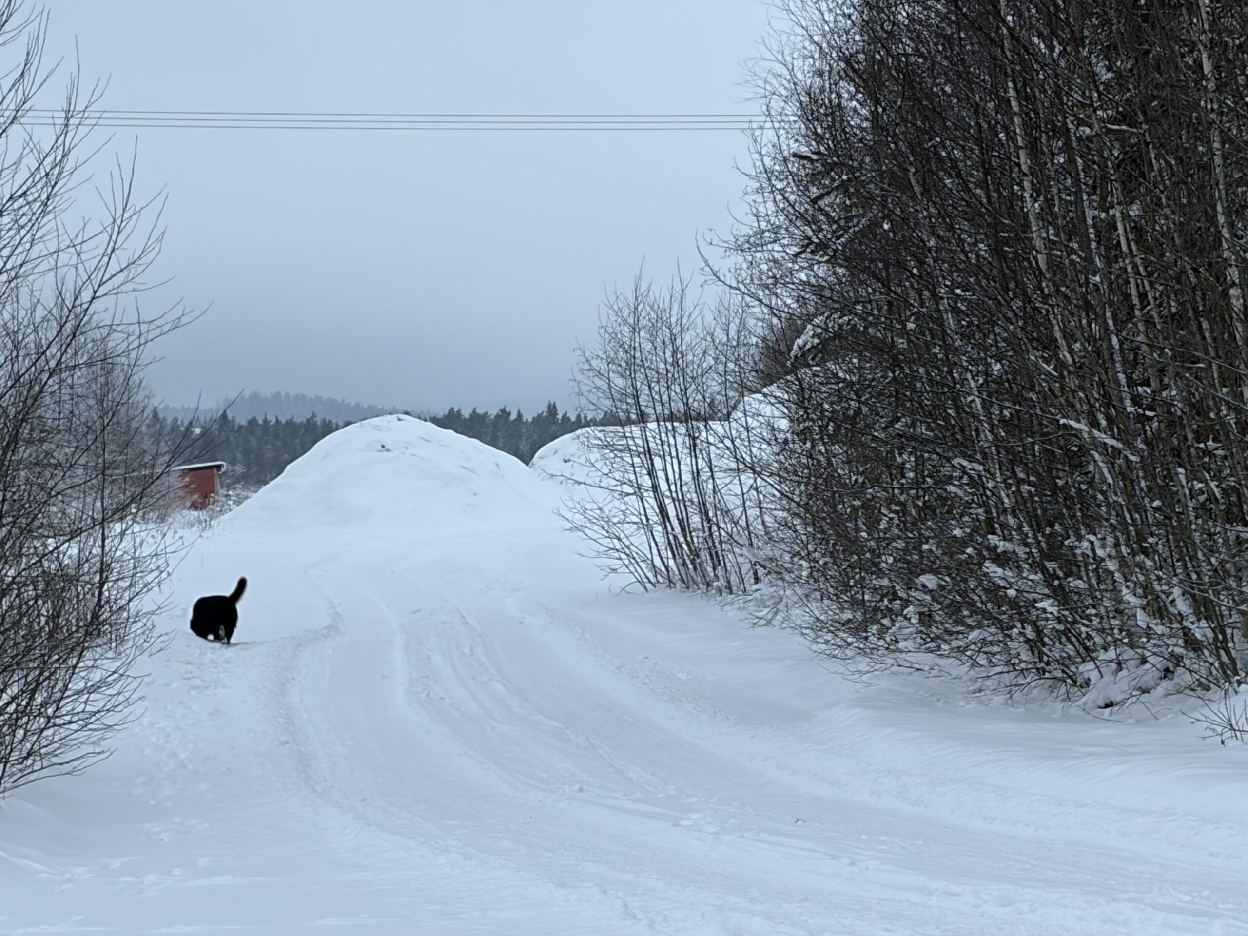 Har varit ute på en 30 minuters runda med vargen, känns fint – 5 grader med lätta snöflingor, dinglar från himlen, jag njuter faktiskt!!!