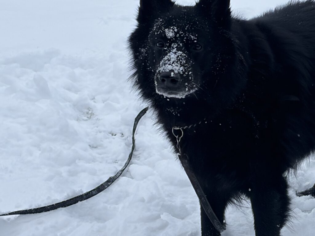 Jisses!! det är smällkallt -20 grader, den här killen trivs som handen i handsken, springa ut i den djupaste snön, massor med spår som ska kontrolleras, både en och två gånger, viktiga detaljer.