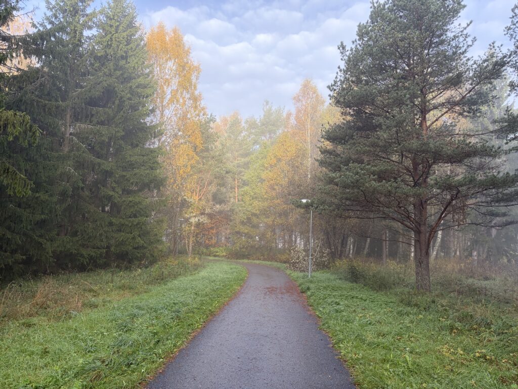 Morgonpromenad i lite höst dis, har första koppen java, så det känns riktigt fint.